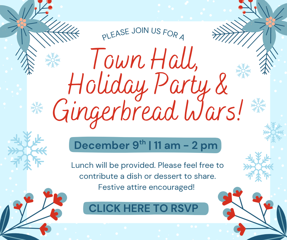 IBBR's Town Hall and Holiday Party will take place on Tuesday, December 9th from 11am-2pm!Festive attire is encouraged!